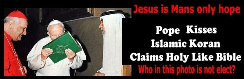 The image below is of a man who does not know G-d and the peace he is trying to bring is denying JESUS as the only LORD. G-d will not have it or them The Koran teaches G-d has no SON and because they insult the SON, Rome can never lead them to Christ. They have always been through their CIA’s and MI5 the masterminds of war. Installing Political leaders from before the birth of Christ ROME has never changed has never been BORN AGAIN and you must be to enter into the throne of G-d and hear HIS voice.